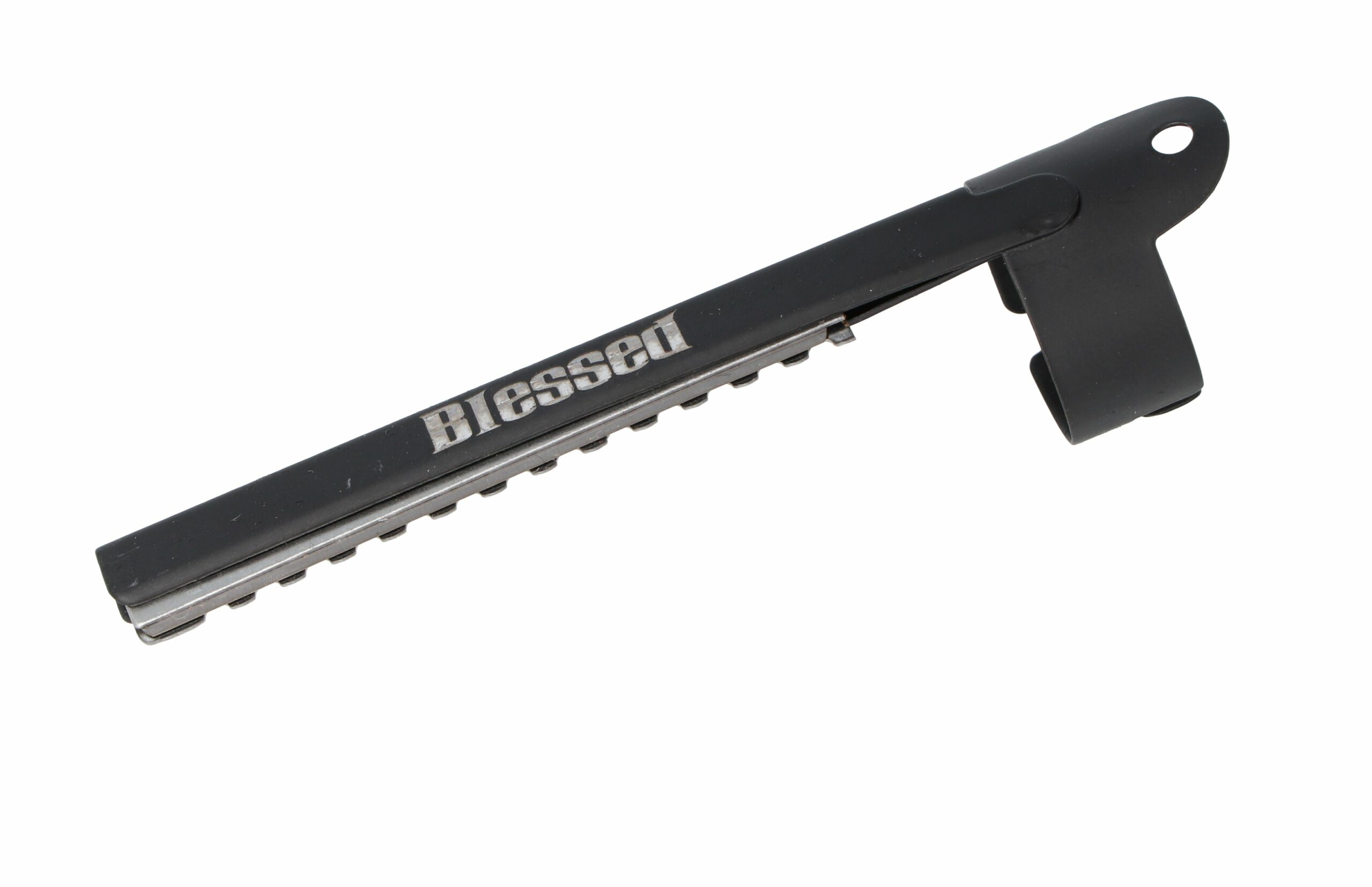 Navaja de anillo negro Blessed, ligera y equilibrada, ideal para barberos que buscan control y precisión en el afeitado clásico con cuchillas intercambiables.