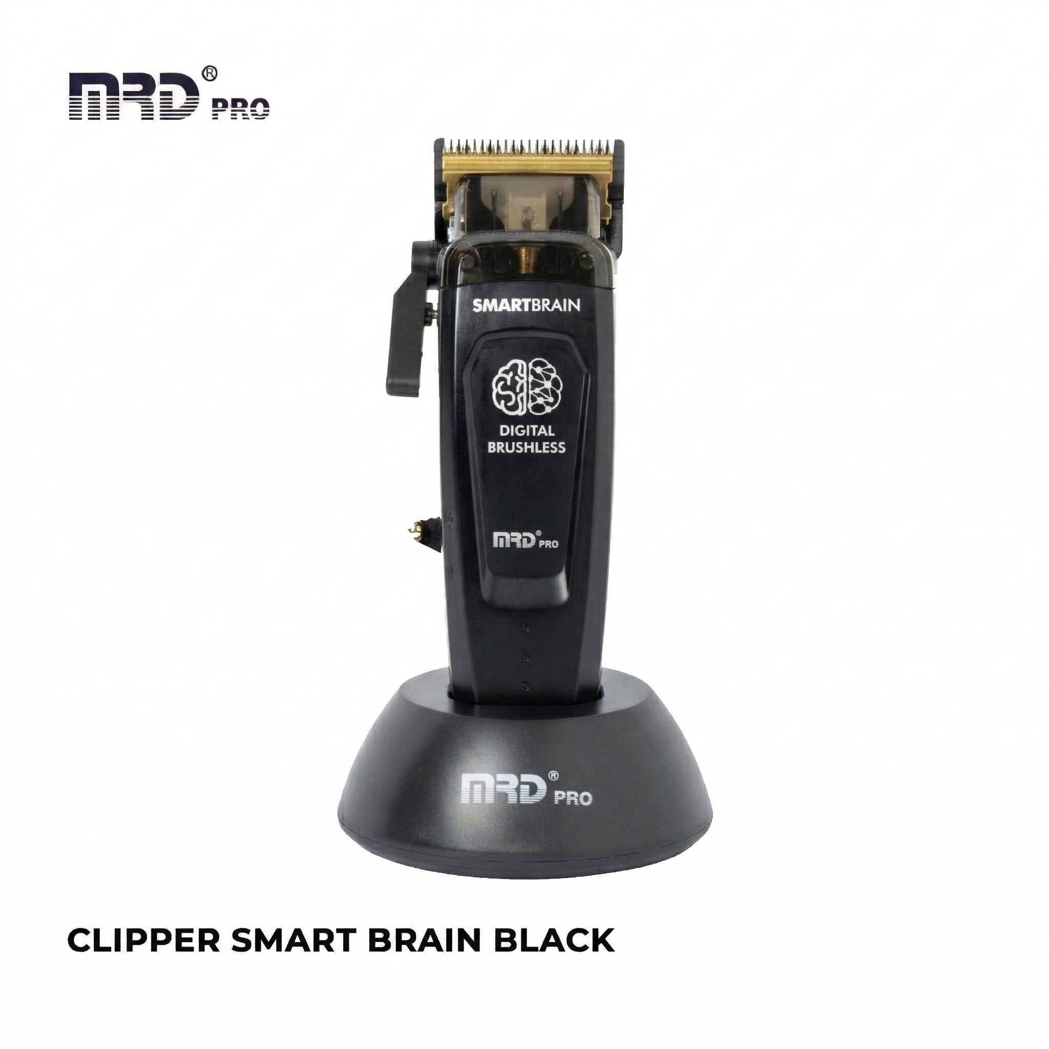 Máquina Clipper Smart Brain Negra MRD PRO con motor magnético 9V, batería de litio 2200mAh y cuchillas japonesas 440C para cortes potentes y precisos.