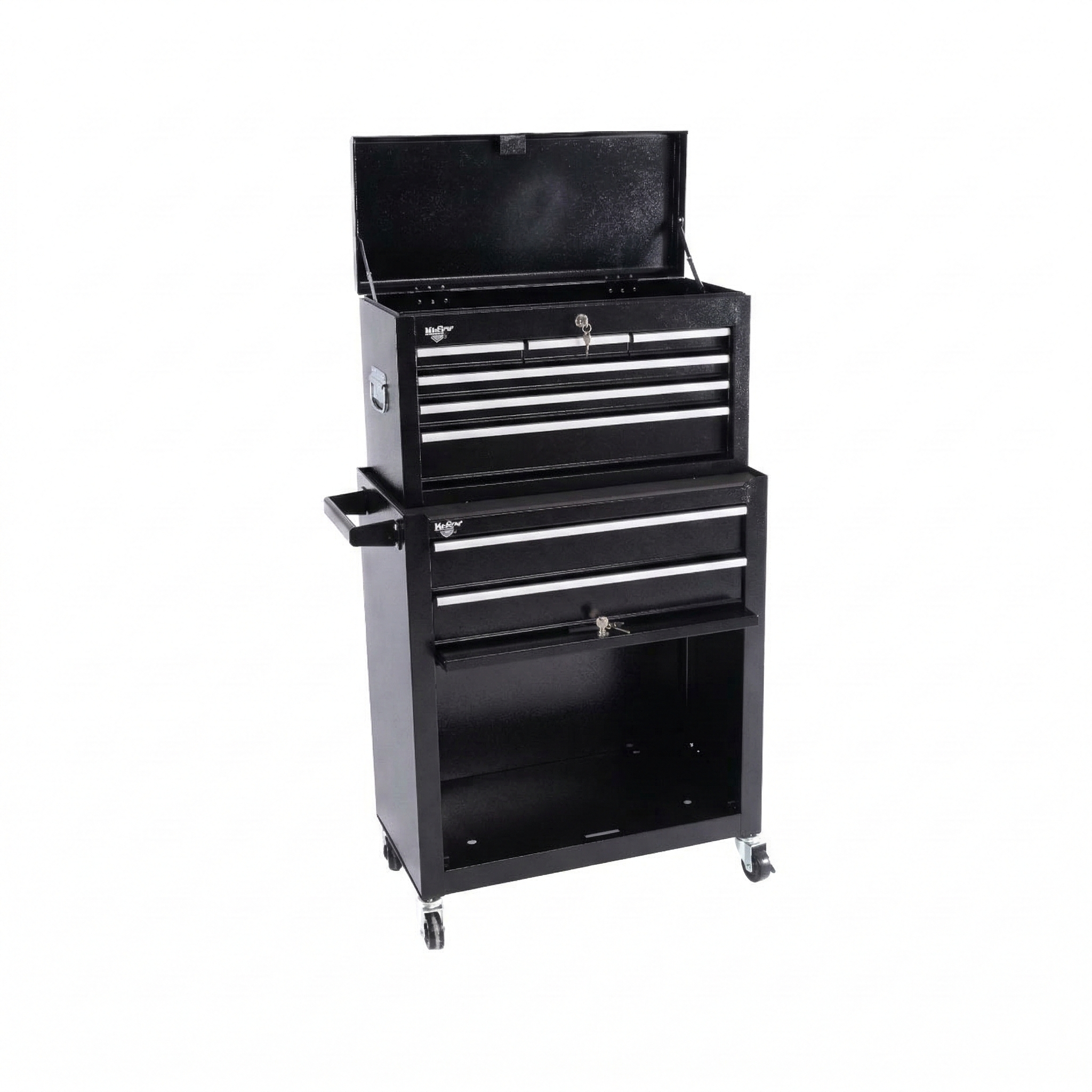 Carrito metálico de barbero STINGLER, robusto y funcional, con bandejas organizadoras y ruedas giratorias para tener herramientas y productos siempre a mano en la barbería.